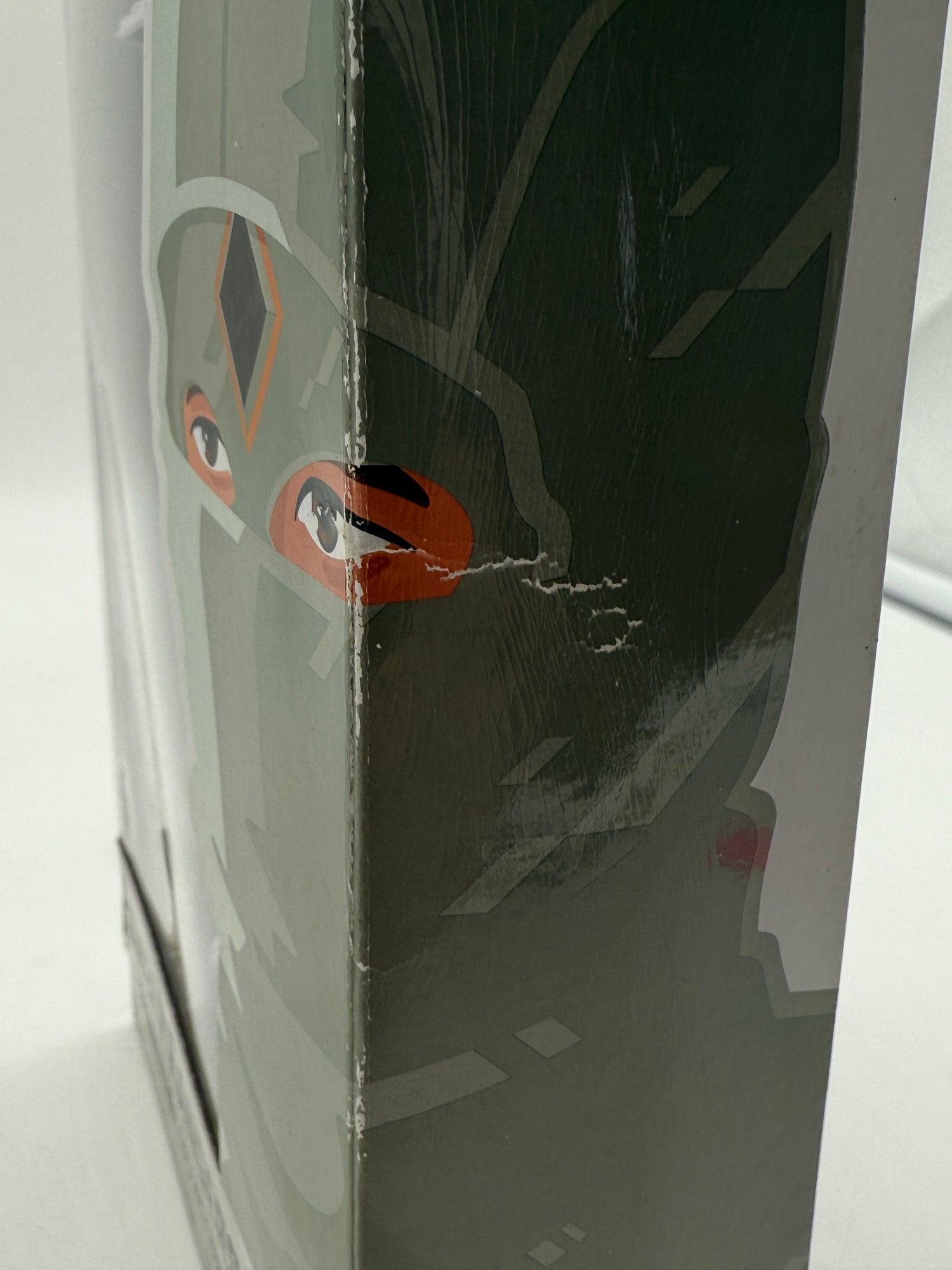 Good condition. Box has a dent on right side by the eye. Package sealed