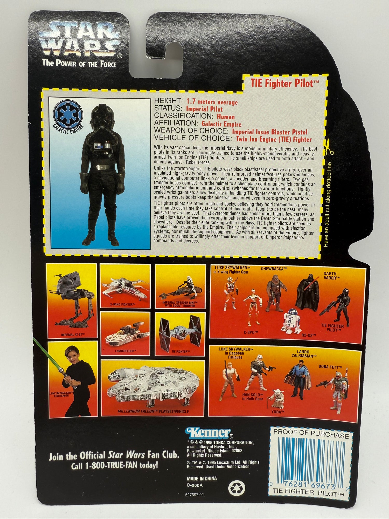 Star Wars The Power of The Force Tie Fighter Pilot 1995 Kenner